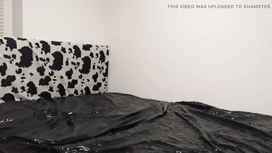 . See my big natural udders with a lot of oil and water on my latex bed sheet.