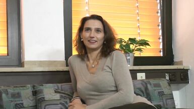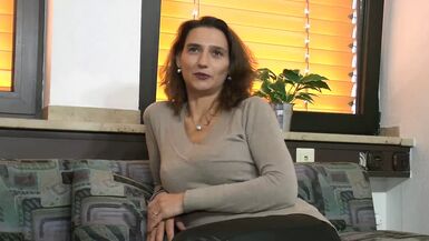 HAPPY AND SMILING SEXY BRUNETTE GERMAN MILF GETS UP AND DILDOES HER PUSSY WHILE SHE STROKES HER SMALL TITS