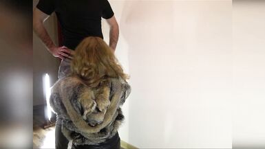 HOT PASSIONATE STANDING FUCK IN CLOTHES, FUR COAT, LEATHER LEGGING, LEATHER HIGH HEELS