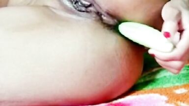 DESI BHABI ALONE AT NOON TIME GOT HORNY AND STARTED PLAYING NUDE INSERTING CUCUMBER IN PUSSY