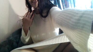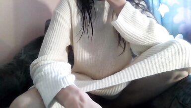 . Hot girl fingering her hairy pussy under the warm dress while chatting dirty online before going to office. NO panties but bush. Closeup. Best time spending to wake up in the morning.
