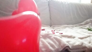. Red roses, red heart-shaped balloons, red lingerie and red pussy. Sexy for Valentine's day. #AngeLove