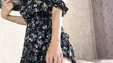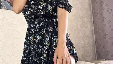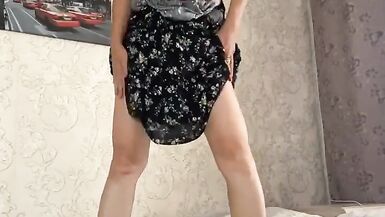. sexy girl in dress playing with hairy pussy