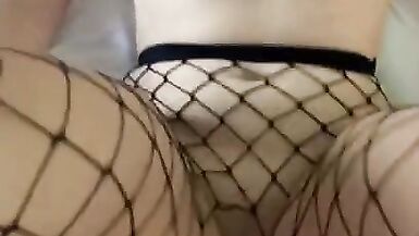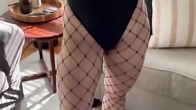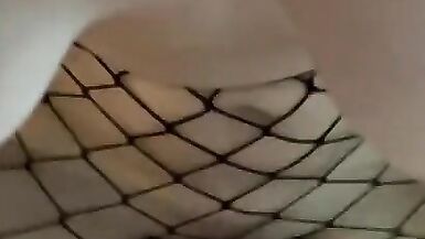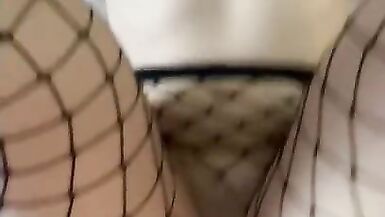 BRUNETTE WITH A TIGHT BODY SHOWS OFF HER NEW HALLOWEEN FISHNET COSTUME AND FUCKS