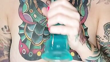 I STRIP AND FUCK MY PUSSY HARD WITH MY BIG BLUE DILDO.