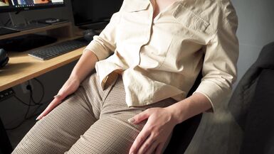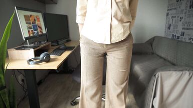 . Have you ever noticed how hot secretaries are in their work trousers? They often so tight... The seam goes deep inside and makes such a nice cameltoe. Imagine yourself as a boss who has a personal submissive secretary who does everything you want. You asked her to wear the tightest pair of pants she has. And now she teases her fat pussy camel toe you like so much.