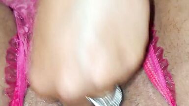 Her pussy is extremely creamy and juice is dripping out of her while she rubs clit. pink wet pussy close up masturbation