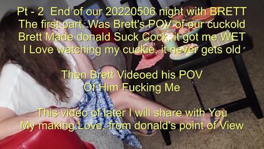 . This video continues my night of 20220506. After I POV video, I have the Cuck video me with his Wife, I also use him to worship my cock that gets his Wife's Pussy Soaking Wet for my cock to Slide In.