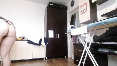 AMATEUR WIFE CLEANS THE HOUSE NAKED, HAIRY PUSSY, BIG TITS, BIG ASS.