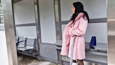 . Risky naked at the train station, gaping my pussy and pissing