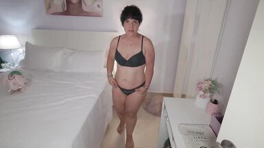 . My stepmom is dressing and I watch her while she puts on her lingerie, she notices and asks me what am I doing looking at her. I get horny seeing her, I tell her that I want to fuck her, at first she rejects me but finally she agrees to fuck me. I start by kissing and touching her, until I put her on all fours against the bed. Then she gives me a delicious blowjob, to finally fuck her in missionary position while she asks me to cum inside her big hairy pussy. Homemade video of a hot mom who needs her big hairy pussy filled with cum. Amateur milf fucked and creampie in her hairy pussy